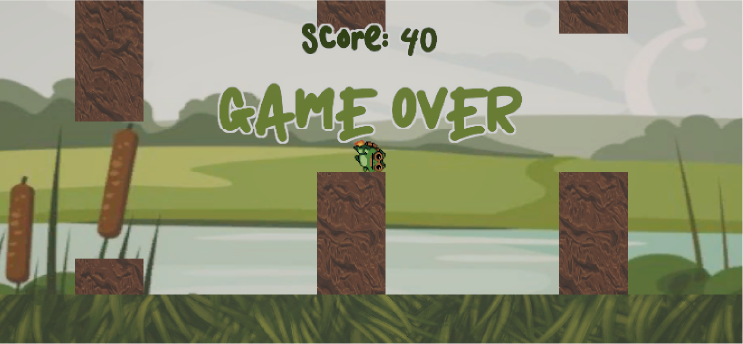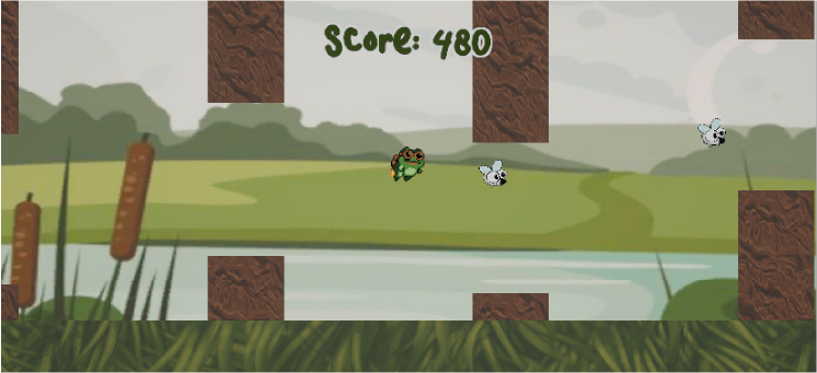 The assignment was to develop a side-scroller game with its own character, environment, obstacles, items, and sounds. I created a game with a frog as the main character, navigating a self-designed world. The player must avoid obstacles and pick up items, while a suitable soundtrack plays in the background and sound effects are played during interactions, such as picking up objects or losing a life. The score is displayed live in the UI, and a clear message appears at the end of the game. By designing all visual and audio elements myself, I gave the game its own identity and atmosphere.